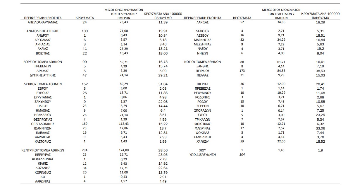Αναλυτικά τα στοιχεία από την ανακοίνωση του ΕΟΔΥ για τη διασπορά του ιού στη χώρα τις τελευταίες 24 ώρες.