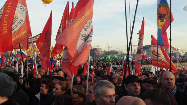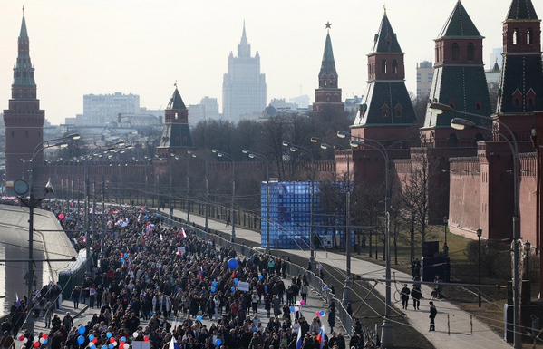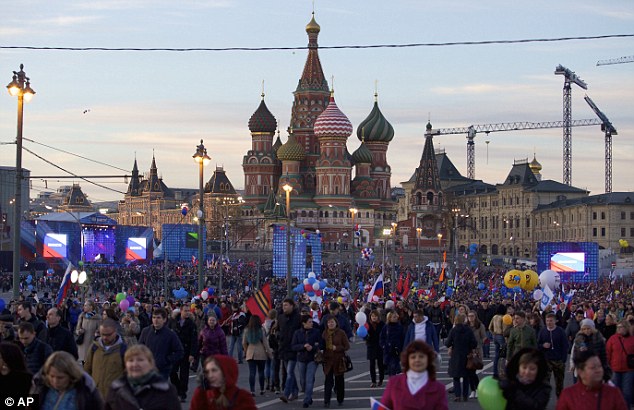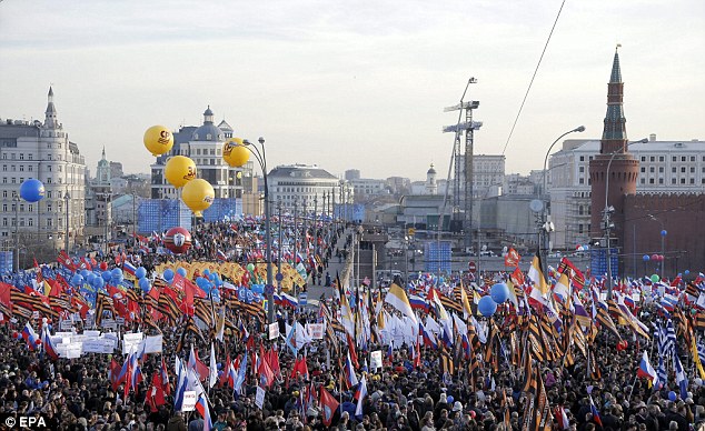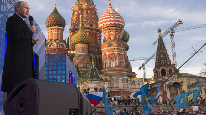 Συνολικά 100.000 Ρώσοι ξεχύθηκαν την Τετάρτη στους δρόμους προκειμένου να γιορτάσουν την πρώτη επέτειο από την προσάρτηση της Κριμαίας στη Ρωσία.