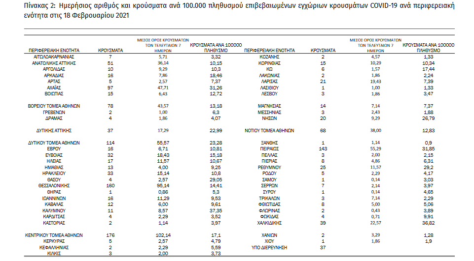 Hλικιακή κατανομή:Η διάμεση ηλικία των κρουσμάτων είναι 44 έτη (εύρος 0.2 έως 105 έτη), ενώ η διάμεση ηλικία των θανόντων είναι 79 έτη (εύρος 15 έως 103 έτη)».