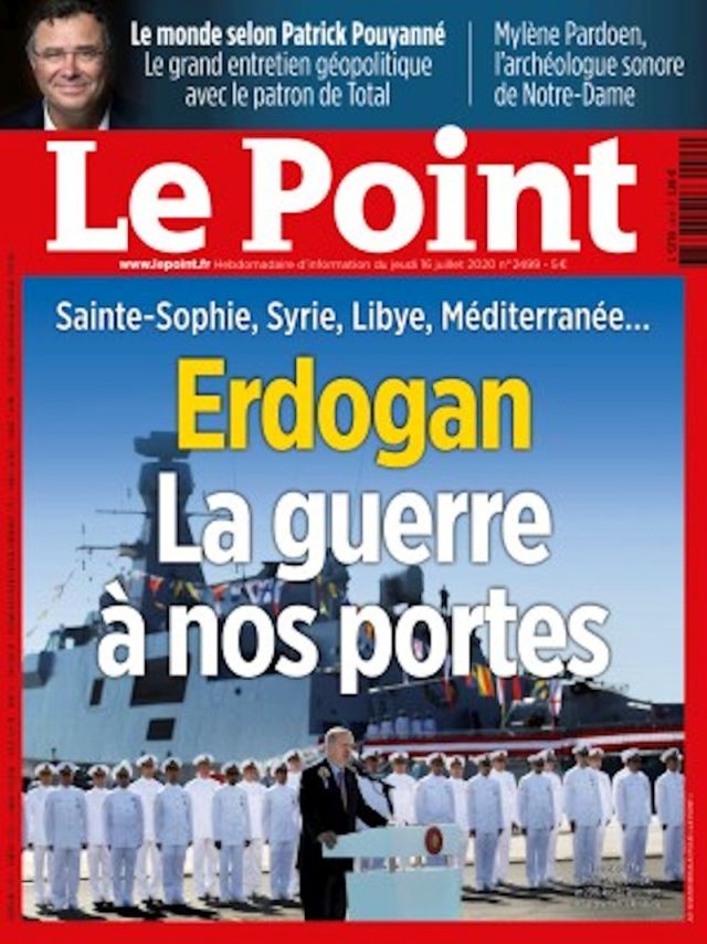 Όπως αναφέρει στο εξώφυλλό του, το Point αναλύει «το νεο-οθωμανικό σχέδιο» Ερντογάν με τίτλο «Ερντογάν, ο πόλεμος προ των πυλών» έχοντας υπέρτιτλο: «Αγία Σοφία, Συρία, Λιβύη, Μεσόγειος…».