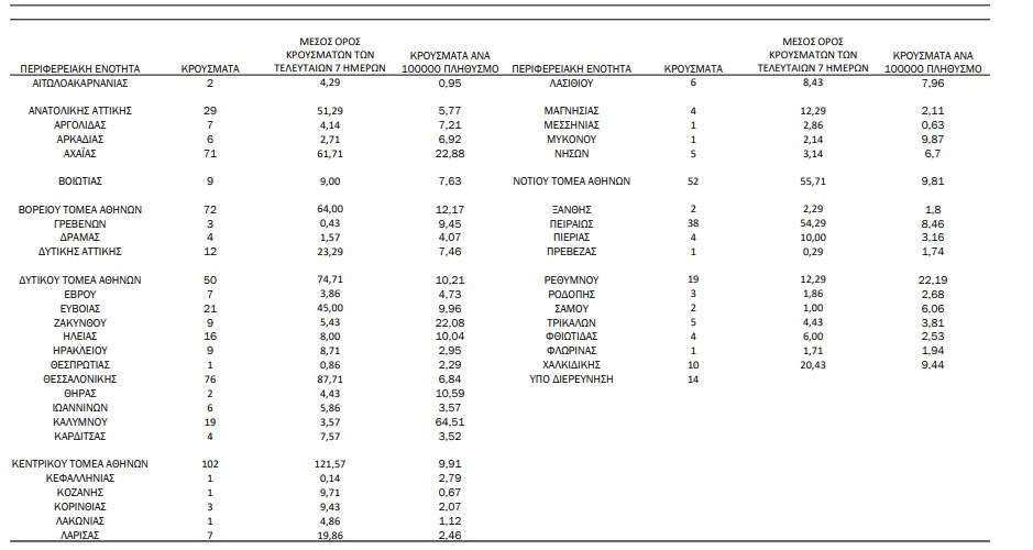 Τέλος, έχουμε 21 νέους θανάτους από τη νόσο COVID-19, φθάνοντας τους 5.972 θανάτους συνολικά στη χώρα, εκ των οποίων 3511 (58.8%) άνδρες. Η διάμεση ηλικία των θανόντων συμπολιτών μας ήταν τα 79 έτη και το 95.6% είχε κάποιο υποκείμενο νόσημα ή/και ηλικία 70 ετών και άνω».