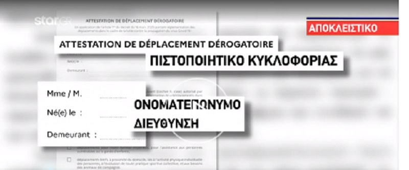 Σε μια πιθανή απαγόρευση κυκλοφορίας, θα πρέπει να δείχνουμε στις Αρχές ένα «πιστοποιητικό κυκλοφορίας» σύμφωνα με όσα μετέδωσε το κεντρικό δελτίο του Star.