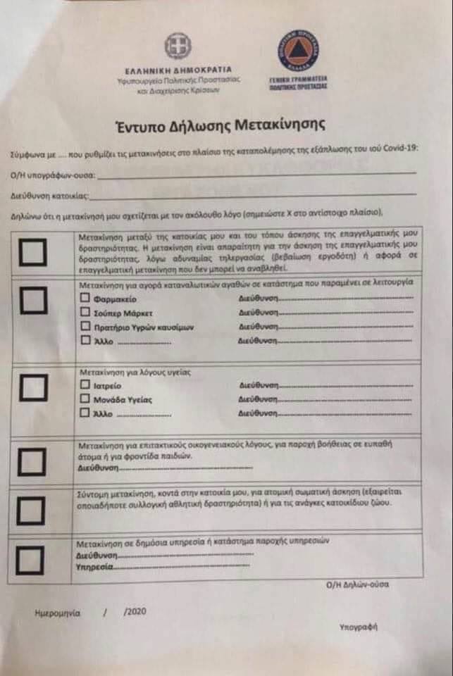 • Μετακινήσεις για ψώνια πρώτης ανάγκης από το σούπερ μάρκετ (μία φορά την ημέρα).
