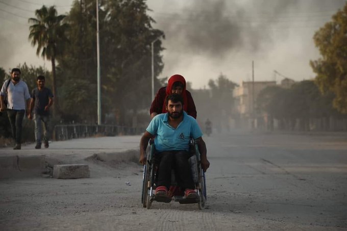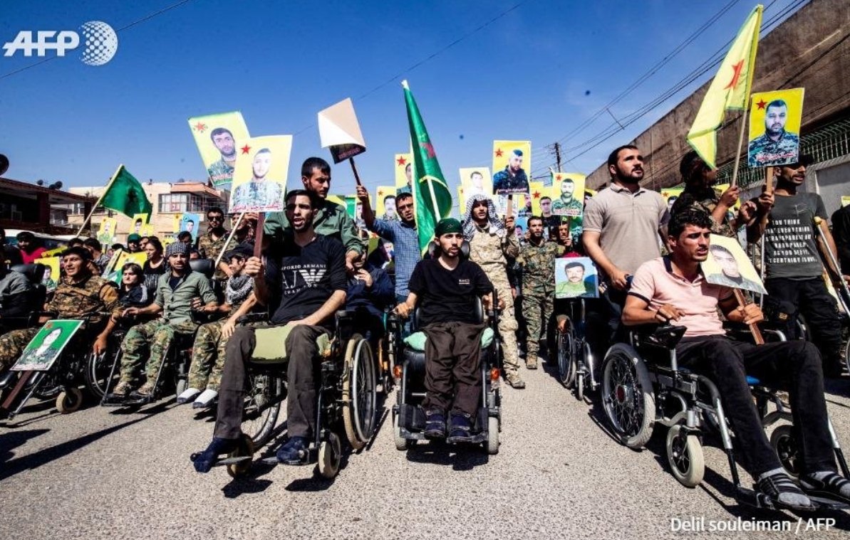 Κούρδοι μαχητές, σε αναπηρικές καρέκλες, εγκαταλείπουν τα σπίτια τους