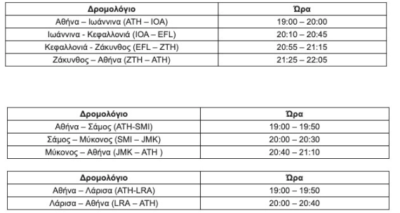 Συγκεκριμένα, θα πραγματοποιηθούν πτήσεις αποκλειστικά και μόνο για την μεταφορά του Αγίου Φωτός προς: Ιωάννινα, Κεφαλλονιά, Ζάκυνθο, Σάμο, Μύκονο και Λάρισα.