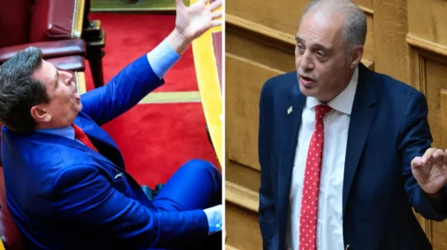 Ο τελευταίος φώναξε από τα έδρανα: «Τα λεφτά στη Γερμανία θα τα φέρεις;», υπαινισσόμενος τις καταθέσεις της συζύγου του κ. Βελόπουλου.