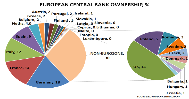 Το ερώτημα που τίθεται είναι τι θα συμβεί αν οι «θεσμοί» δεν καταφέρνουν να συμφωνήσουν σε μια ακόμη «προσποίηση και επέκταση»; Η απάντηση που δίνει η ανάλυση είναι σαφής: οι χώρες της ΕΚΤ θα κληθούν να σηκώσουν το βάρος. Βάσει των επίσημων στοιχείων της ΕΚΤ, η Γερμανία κατέχει το μεγαλύτερο μερίδιο της ιδιοκτησίας της Κεντρικής Τράπεζας (18%), άρα θα είναι αυτή που θα επωμιστεί το μεγαλύτερο βάρος και θα χρειαστεί να βάλει το χέρι στην τσέπη. Οι υπολογισμοί δείχνουν πως η ζημία της μπορεί να φτάσει στα 86 δισεκατομμύρια ευρώ, δεδομένο ότι αυτές οι ζημίες σχετίζονται με το Target 2 του συστήματος πληρωμών της ΕΚΤ. Μάλιστα, το ποσοστό της Γερμανίας μπορεί να μεγαλώσει, αν οι χώρες όπως η Ιταλία και η Ισπανία (12% και 9% αντίστοιχα) αποφασίσουν πως δεν μπορούν να πληρώσουν το μερίδιό τους. Κάτι που είναι πολύ πιθανό να συμβεί με δεδομένη την κακή οικονομική κατάσταση που βρίσκονται αμφότερες.