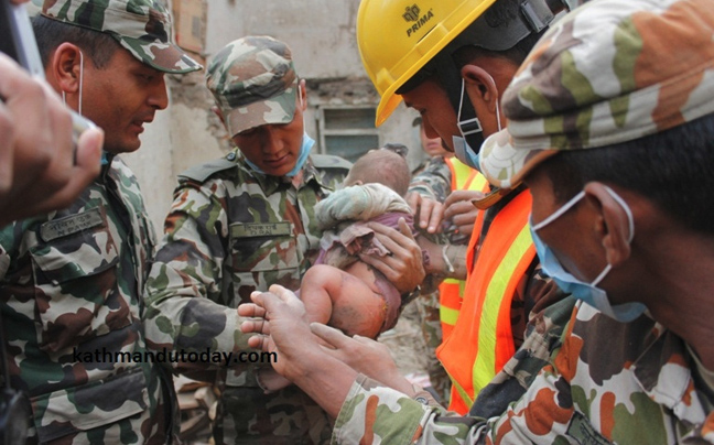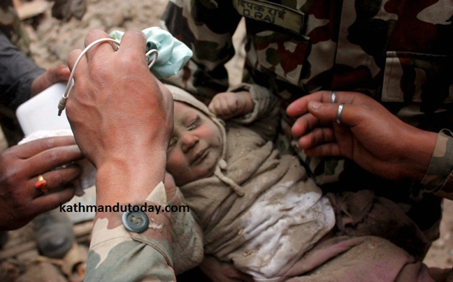 Αρχικά οι διασώστες και οι άνδρες του στρατού του Νεπάλ θεώρησαν πως είναι νεκρό. Λίγες ώρες αργότερα όμως τα κλάματα του τους έκαναν να καταλάβουν πως η θέληση για ζωή είναι πιο δυνατή από τα Ρίχτερ.