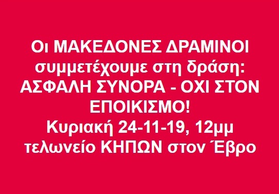«Συναντιόμαστε οι Θρακιώτες στο τελωνείο Κήπων του Έβρου για να καλέσουμε την Κυβέρνηση να πράξει το κυριότερο καθήκον της: να στεγανοποιήσει τα σύνορα, παρέχοντας έτσι στοιχειώδη ασφάλεια στην ακριτική περιοχή μας. Μια ανθρώπινη αλυσίδα θα ζητήσει το αυτονόητο δικαίωμα κάθε πολίτη που κατάντησε ζητούμενο στις μέρες μας».
