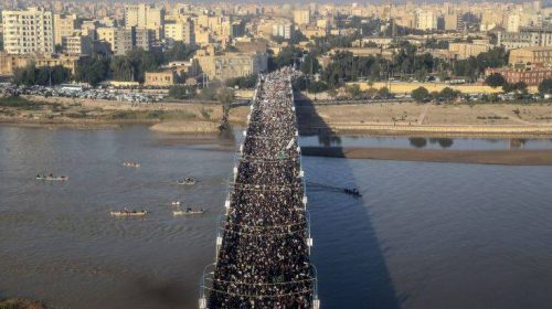 Ανδρες και γυναίκες κλαίνε χτυπώντας το στήθος υπό τους ήχους του μονότονου σιιτικού τραγουδιού: «Πραγματοποίησες το όνειρό σου, συνάντησες τον ιμάμη Χουσέιν».