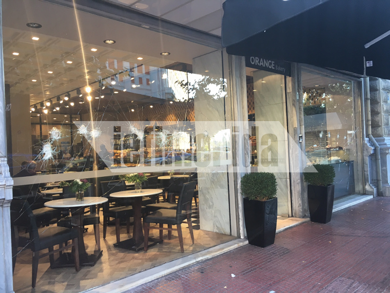 Αντιεξουσιαστές με βαριοπούλες και πέτρες χτυπούσαν τις τζαμαρίες καφετέριας & καταστήματος υποδημάτων [εικόνες]