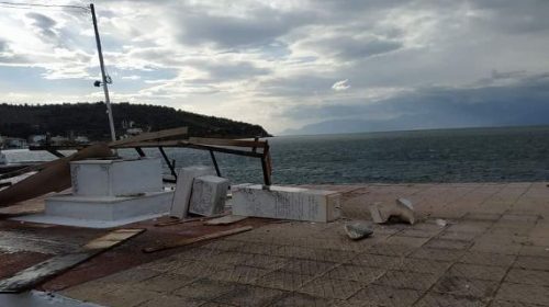 Μια ξύλινη εξέδρα καταστήματος, στην παραλία της Ερατεινής, έγινε έρμαιο των μποφόρ με αποτέλεσμα να… διαλύσει ένα ηρώο