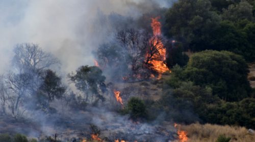 Η φωτιά μαίνεται κοντά σε κατοικημένη περιοχή, σε μικρή απόσταση από σπίτια που είχαν υποστεί ζημιές από περσινή πυρκαγιά.