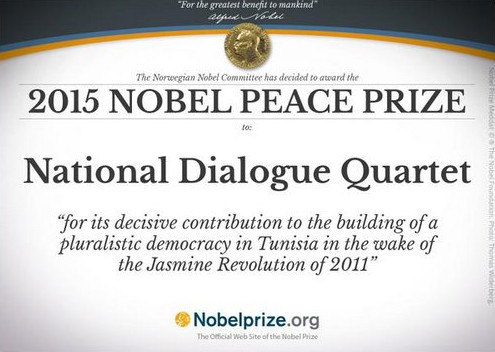 Το Κουαρτέτο Εθνικού Διαλόγου της Τυνησίας κέρδισε το βραβείο Νόμπελ Ειρήνης.