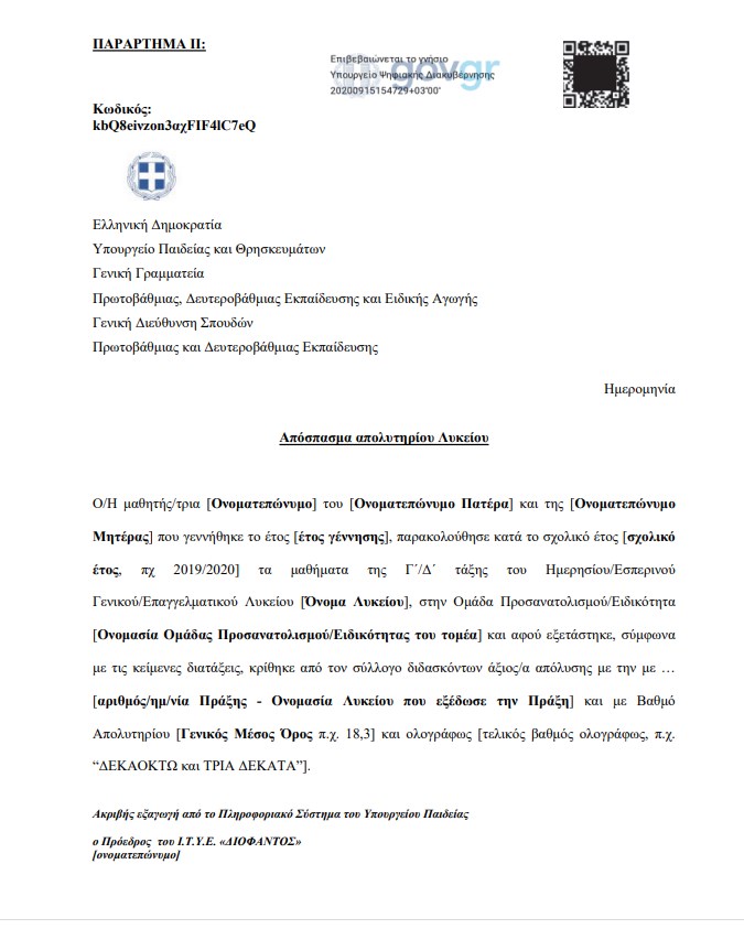 Δείτε πώς θα είναι το απολυτήριο Λυκείου
