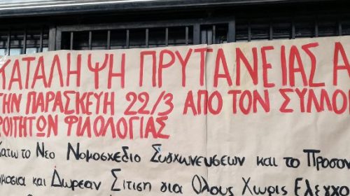 Κατάληψη στο Κτίριο Διοίκησης του Αριστοτελείου Πανεπιστημίου Θεσσαλονίκης (ΑΠΘ) πραγματοποιεί από το πρωί ο Σύλλογος Φοιτητών Φιλολογίας, με τη συμμετοχή φοιτητών από συλλόγους και άλλων σχολών.
