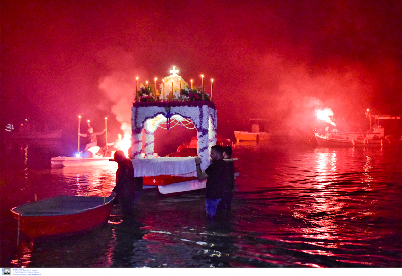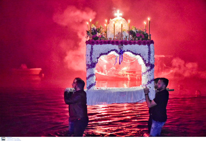 Κατά τη διάρκεια της περιφοράς , στην παραλία οι νέοι του χωριού κάθε χρόνο μεταφέρουν τον Επιτάφιο μέσα στη θάλασσα, ενώ τα κατακόκκινα βεγγαλικά του Συλλόγου των Αλιέων δίνουν ξεχωριστό τόνο.