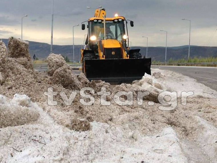 Αντίθετα άσπρισαν τα πάντα στον Ορχομενό, τη Λιβαδειά, τον Αλίαρτο και στην Κωπαΐδα από μια 15λεπτη μεγάλης έντασης χαλαζόπτωση.