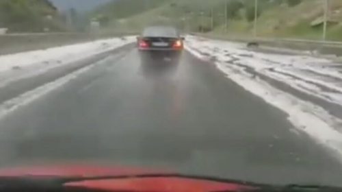 Για την ακρίβεια, έστρωσε το χαλάζι, σα χιόνι, στην Εγνατία Οδό στο ύψος των διοδίων στον Πολύμυλο Κοζάνης.