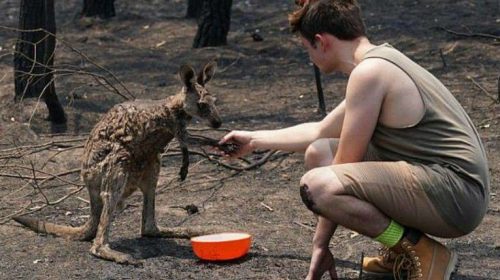 Μια συγκινητική στιγμή απαθανάτισε ο φωτογραφικός φακός στην Αυστραλία κατά τη διάρκεια των πυρκαγιών που έπληξαν τη χώρα.