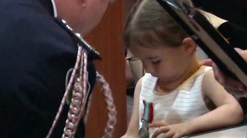 Η μικρή, ντυμένη στα λευκά, παραβρέθηκε στην κηδεία του μπαμπά της, όπου και έλαβε από τον διοικητή της Πυροσβεστικής Shane Fitzsimmons το κράνος του και ένα μετάλλιο, σύμφωνα με το Sky News.