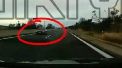 Το περιστατικό σημειώθηκε το απόγευμα του Σαββάτου και καταγράφηκε από την κάμερα διερχόμενου αυτοκινήτου, στο ύψος του Μελενικιτσίου Σερρών.