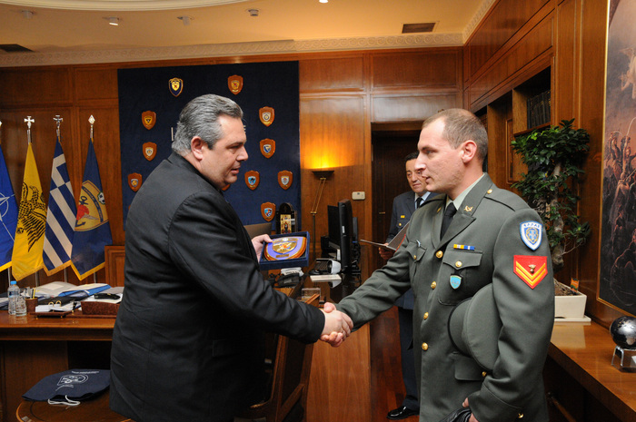 Επιδίδοντας τον θυρεό του υπουργείου Εθνικής Άμυνας, ο κ. Καμμένος δήλωσε μεταξύ άλλων: «Εκ μέρους του υπουργείου Εθνικής Άμυνας, εκ μέρους του ελληνικού λαού, θέλω να σας συγχαρώ δημόσια που δείξατε το ήθος του Έλληνα Υπαξιωματικού, του Έλληνα Στρατιώτη. Είμαστε υπερήφανοι για εσάς».