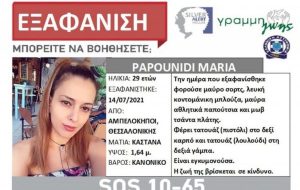 Συναγερμός σήμανε για την εξαφάνιση 29χρονης γυναίκας από τη Θεσσαλονίκη. Πρόκειται για την Papounidi Maria, 29 ετών, που την 14/07/21… [16 Ιουλίου, 2021 - 01:31]