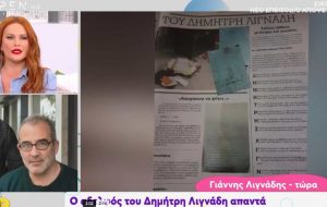 Ο αδερφός του Δημήτρη Λιγνάδη Γιάννης απάντησε στο δημοσίευμα της εφημερίδας «ΜΠΑΜ στο Ρεπορτάζ» για τις ερωτικές επιστολές που λάμβανε… [7 Μαρτίου, 2021 - 14:34]