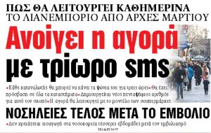 Πώς θα λειτουργεί καθημερινά το λιανεμπόριο από τις αρχές Μαρτίου, παρουσιάζουν ΤΑ ΝΕΑ της Τρίτης. Διαβάστε στα «ΝΕΑ» της Τρίτης:… [23 Φεβρουαρίου, 2021 - 00:43]
