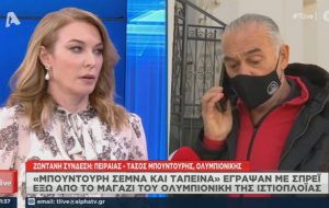 Ο Ολυμπιονίκης της ιστιοπλοϊας, Τάσος Μπουντούρης απάντησε σήμερα στο T-Live με την Τατιάνα Στεφανίδου για τα συνθήματα που έγραψαν άγνωστοι… [20 Ιανουαρίου, 2021 - 16:04]