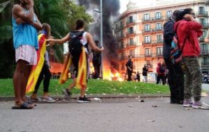 Οι διαδηλωτές κρατούσαν σημαίες της Ισπανίας και της Καταλονίας και φώναζαν συνθήματα όπως «Αρκετά» Δεκάδες χιλιάδες Καταλανοί, υπέρμαχοι της ενότητας… [28 Οκτωβρίου, 2019 - 00:25]