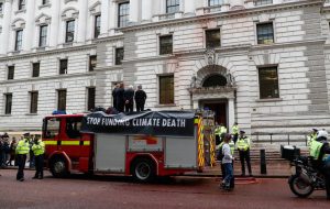 Δείτε εικόνες από την κινητοποίηση Ακτιβιστές κατά της κλιματικής αλλαγής χρησιμοποίησαν σήμερα ένα πυροσβεστικό όχημα για να ρίξουν κόκκινη μπογιά… [3 Οκτωβρίου, 2019 - 18:25]