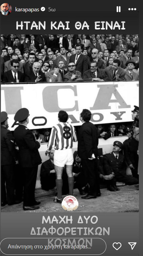 Ο Καραπαπάς έκανε πάλι του κεφαλιού του! Μια μέρα πριν το μεγάλο ντέρμπι στη Λεωφόρο, ο αντιπρόεδρος του Ολυμπιακού δεν άντεξε και ανέβασε ένα story στο Instagram που έκαψε τα κοινωνικά δίκτυα.