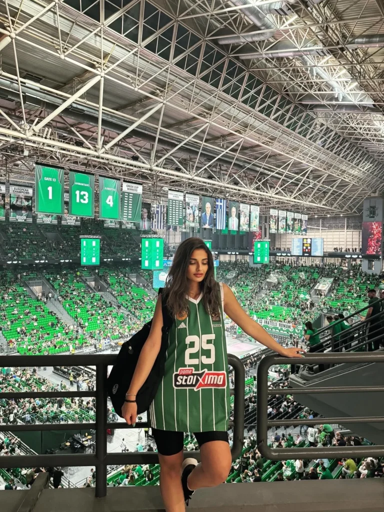 Στο κλικ που… έριξε το Instagram, την βλέπουμε να ποζάρει με φόντο τα ιερά λάβαρα και τα αστέρια του Παναθηναϊκού στην οροφή του κλειστού. Φορώντας τη φανέλα με το νούμερο “25” και αναδεικνύοντας την κορμάρα της, μαγνητίζει τα βλέμματα και δίνει άλλη λάμψη στο γήπεδο. Ως επαγγελματίας στον χώρο των ξενοδοχείων, άλλωστε, ξέρει καλά τι σημαίνει στυλ, φινέτσα και επιβλητική παρουσία.