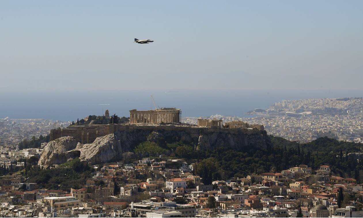 Μαχητικά αεροσκάφη της Πολεμικής μας Αεροπορίας πέταξαν το πρωί της Κυριακής (8/11) πάνω από την Αθήνα στο πλαίσιο των εορτασμών για την εορτή του Προστάτη της Πολεμικής Αεροπορίας.