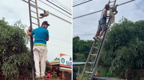 «Οδηγούσαμε και παρατηρήσαμε έναν βραδύποδα να έχει παγιδευτεί σε ηλεκτροφόρα καλώδια, χωρίς κοντινό δέντρο για να σκαρφαλώσει. Ξέρουμε ότι οι βραδύποδες παθαίνουν συχνά ηλεκτροπληξία από τα καλώδια, κι έτσι με τη βοήθεια των ντόπιων και κάποιων τουριστών καταφέραμε να τον απεγκλωβίσουμε και να τον επιστρέψουμε στο αγαπημένο του δέντρο στη ζούγκλα», είπε χαρακτηριστικά ο άνθρωπος που κατέγραψε το υλικό…