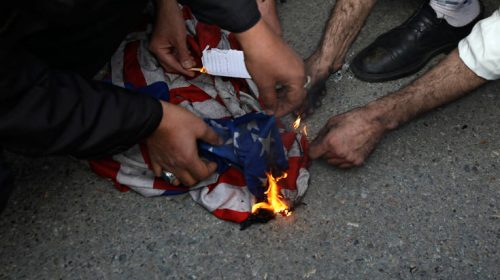 Οι διαδηλωτές καίνε σημαίες των ΗΠΑ και φωνάζουν συνθήματα