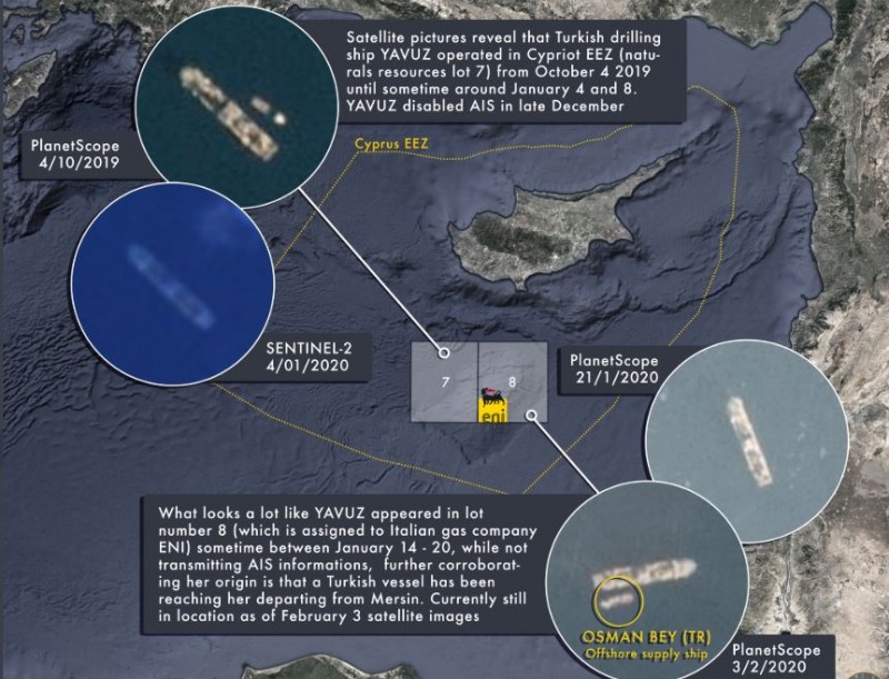 Τις τελευταίες μέρες λογαριασμοί στο twitter έχουν αναρτήσει δορυφορικές φωτογραφίες από τις κινήσεις στου αεροπλανοφόρου στην Ανατολική Μεσόγειο και την θέση του τουρκικού γεωτρύπανου «Γιαβούζ»: