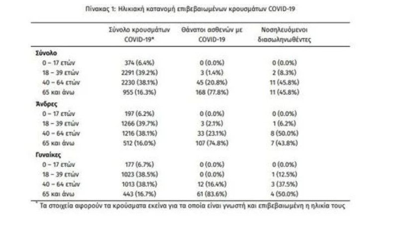 Όπως φαίνεται δε από τους σχετικούς πίνακες, πλέον η πλειοψηφία των κρουσμάτων κορωνοϊού εντοπίζεται στην ηλικιακή ομάδα 18 έως 39.
