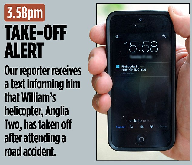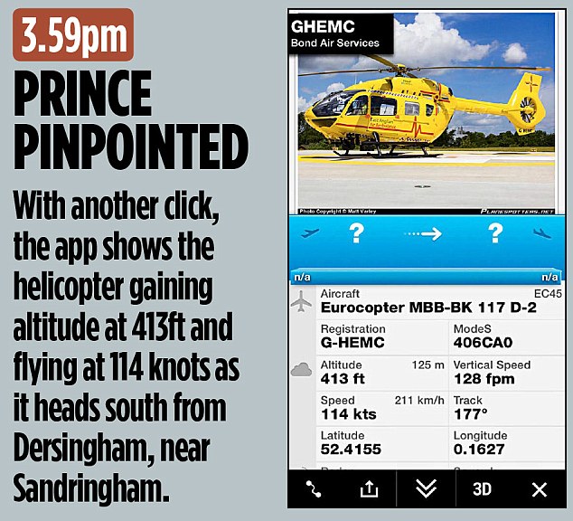 Ομάδα της Daily Mail την περασμένη εβδομάδα χρησιμοποίησε την εφαρμογή και παρακολούθησε τον πρίγκιπα Ουίλιαμ, καθώς πετούσε από το Βόρειο Νορφολκ προς μία σκηνή ατυχήματος.