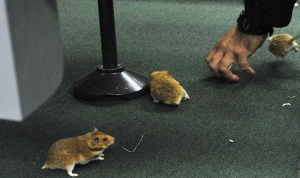 Τα καφέ ποντίκια έτρεχαν στην πράσινη μοκέτα με την οποία ήταν καλυμμένο το πάτωμα μπροστά από τον ταμία, που παρακολουθούσε απαθής την «έφοδό» τους, μετέδωσε ένας δημοσιογράφος του Γαλλικού Πρακτορείου.