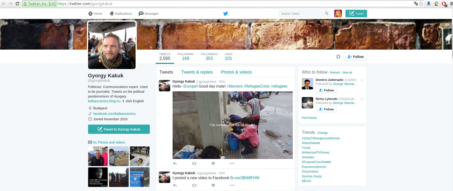 Ο Ούγγρος δημοσιογράφος Γκιόργκι Κακούκ, δημοσίευσε στον προσωπικό του λογαριασμό στο twitter ένα βίντεο όπου μικροί πρόσφυγες πλένονται κάτω από μία βρύση.
