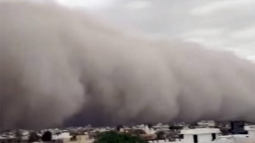 Σε βίντεο που κυκλοφόρησε φαίνεται η αμμοθύελλα, που προέρχεται από την έρημο, να φτάνει στην πόλη Τσουρού με τους τρομοκρατημένους κατοίκους να βγάζουν τα κινητά τους για να απαθανατίσουν το θέαμα.