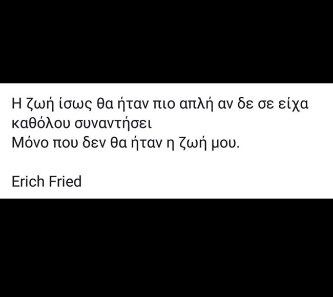 Η ζωή ίσως θα ήταν πιο απλή αν δεν σε είχα καθόλου συναντήσει. Μόνο που δεν θα ήταν καθόλου η ζωή μου. Erich Fried