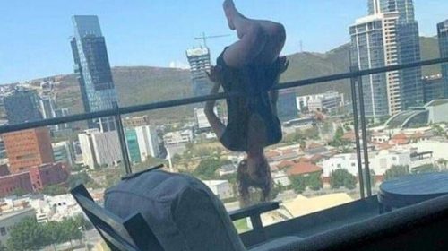Μία 23χρονη λάτρης της extreme yoga προσπάθησε να κάνει μία δύσκολη άσκηση στην άκρη του μπαλκονιού του διαμερίσματός της στον 6ο όροφο πολυκατοικίας στο κτίριο στο βορεοανατολικό μεξικανικό κράτος Νουέβο Λεόν το περασμένο Σάββατο.