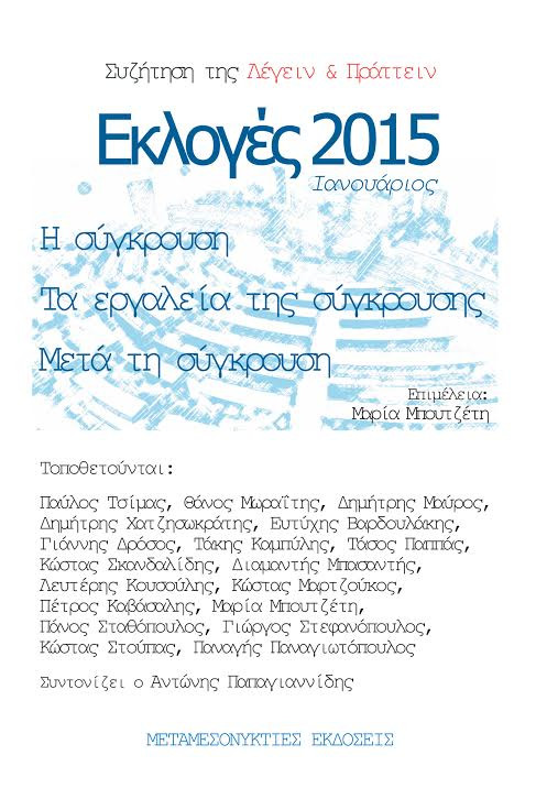 Η μικρή αυτή έκδοση μιλάει για τις εκλογές του Ιανουαρίου του 2015. Πρόκειται για την αποτύπωση μιας συζήτησης σαν αυτές που διοργανώνει κατά καιρούς η Λέγειν & Πράττειν.
