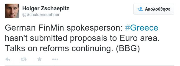 Είπε χαρακτηριστικά: «Η ελληνική βουλή θα πρέπει να εγκρίνει τις μεταρρυθμίσεις προτού υπάρξει περαιτέρω βοήθεια προς την Αθήνα», ενώ σε ερώτηση αν έχει οριστεί συγκεκριμένη ημερομηνία για Eurogroup, απάντησε: «Δεν έχει οριστεί ακόμη ημερομηνία συνεδρίασης του Eurogroup για την Ελλάδα».