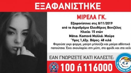 Συναγερμός έχει σημάνει για την εξαφάνιση της 15χρονης Μιρέλας