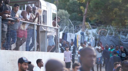 Αυτή την ώρα έξω από το ΚΥΤ. Φωνάζουν συνθήματα όπως ελευθερία.